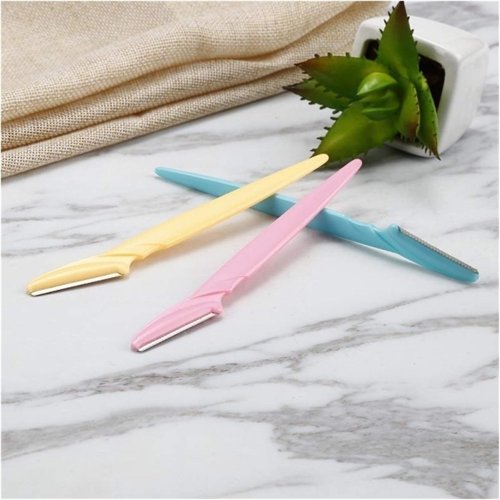 Incluye 3 piezas en el paquete con colores variados: Azul, amarillo y verde. Ideales para uso personal.- La cabeza de corte está fabricada en acero inoxidable y las manijas están elegantemente curvadas para un fácil control, protegiendo la piel delicada y manteniendo la nitidez a largo plazo.- La afeitadora de cejas incluye una tapa protectora para mantener la hoja limpia y protegida contra la oxidación.- Estas cuchillas están diseñadas para no causar enrojecimiento ni dolor en la piel, ayudando a definir las cejas y dejándolas con un aspecto limpio y atractivo.- Este removedor de vello facial no solo es útil para esculpir las cejas, sino también para eliminar el vello corporal y la piel de melocotón.